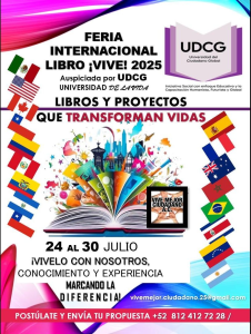 La edición 2025 de la Feria Internacional del Libro ¡VIVE! 2025 desde México, que se tramite al Mundo a través de la plataforma Online de la Organización vía Facebook aprovechando las tecnologías digitales, para viralizar libros y proyectos literarios, es impulsada por la UDCG Universidad de la Ciudadana Global, la primera Universidad liderada por un selecto equipo de mujeres con ideas originales.