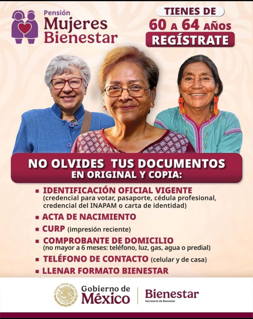 Exhortó a las mujeres de 60 a 64 años a acudir a los Módulos de Bienestar que brindan atención de lunes a sábado, de 10:00 a 16:00 horas y cuya ubicación se puede consultar en la página oficial de la Secretaría de Bienestar www.gob.mx/bienestar.